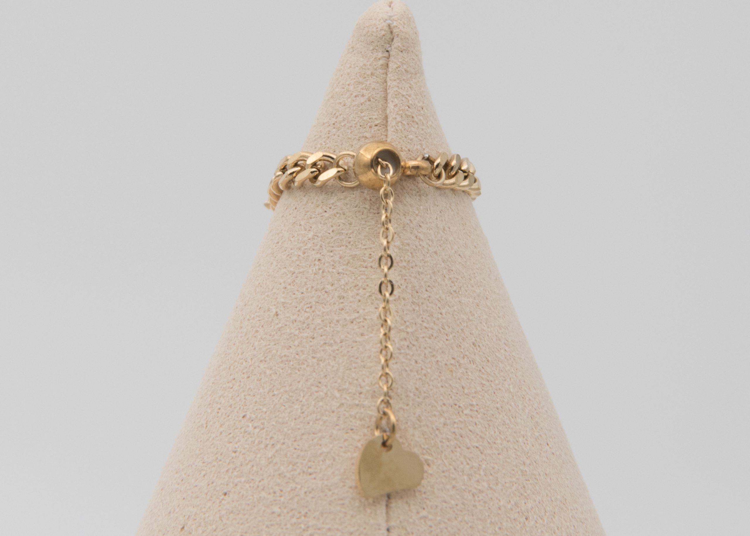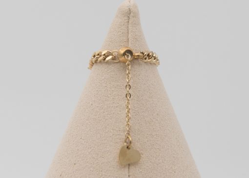 - La chaîne de fermeture de la bague se termine par un petit pendentif en forme de cœur.
