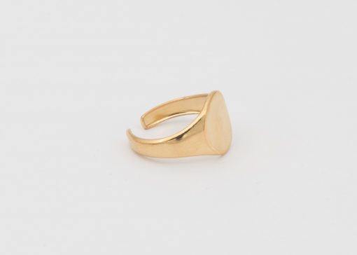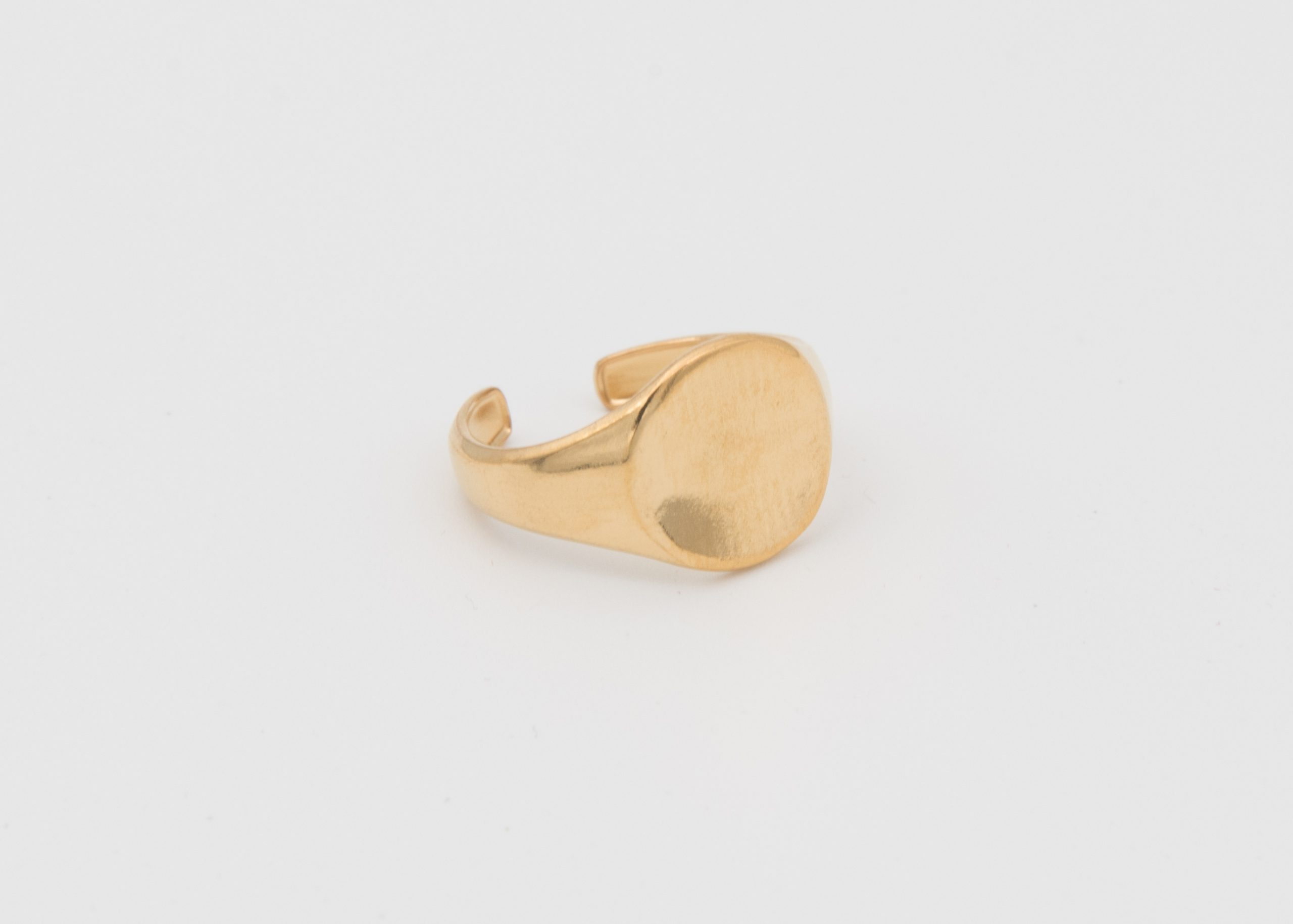 - Bague ajustable dorée, de type chevalière personnalisable.