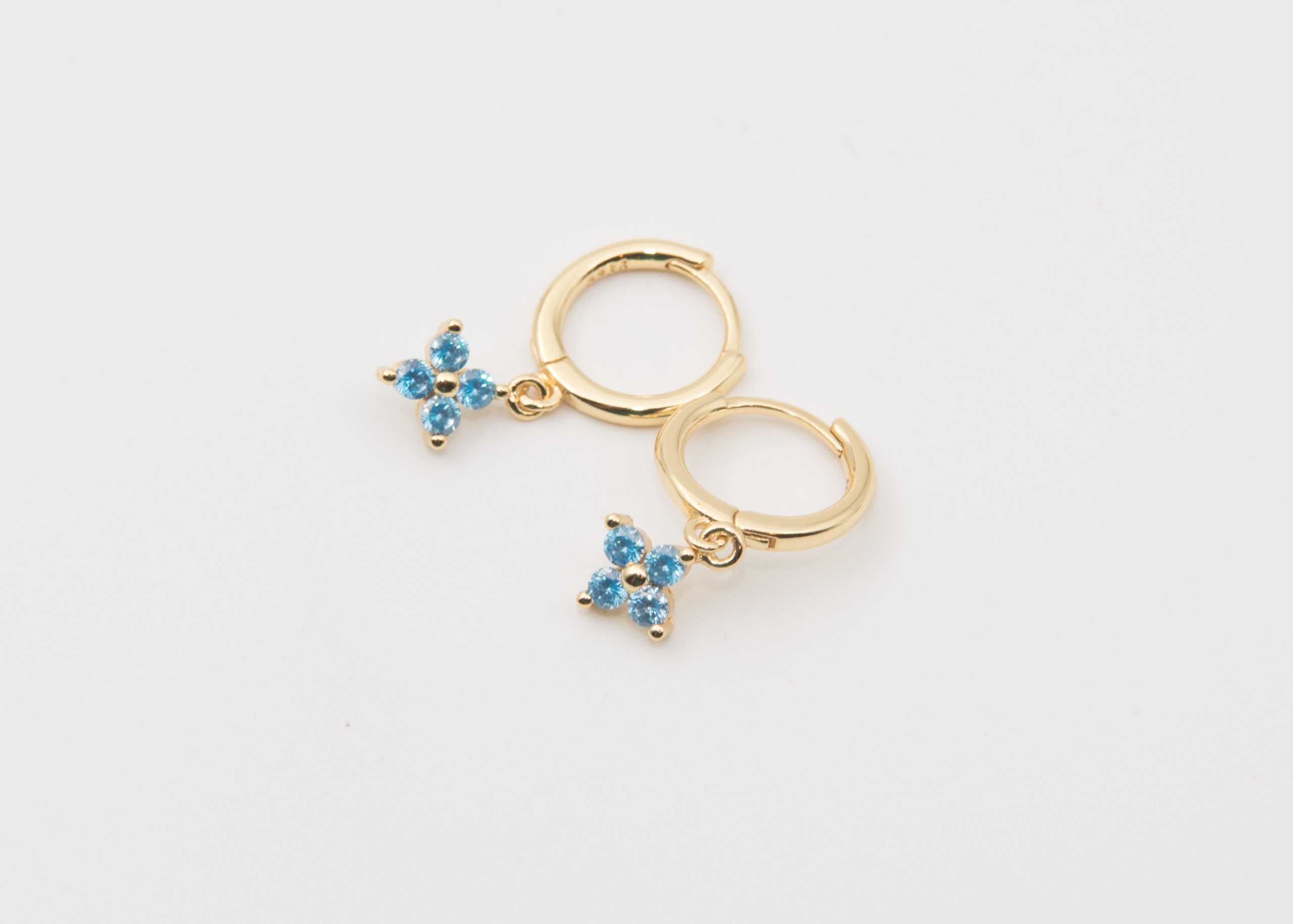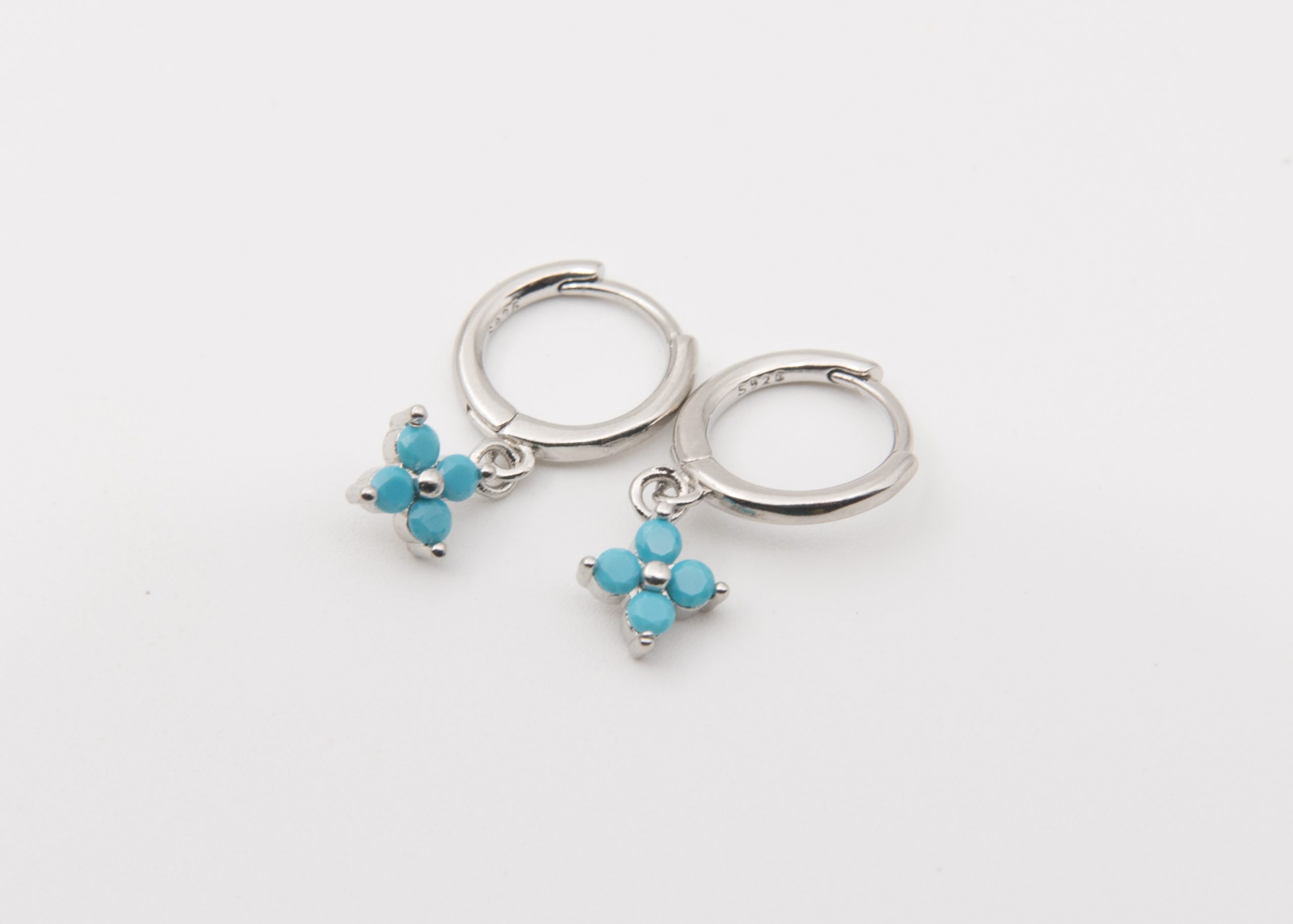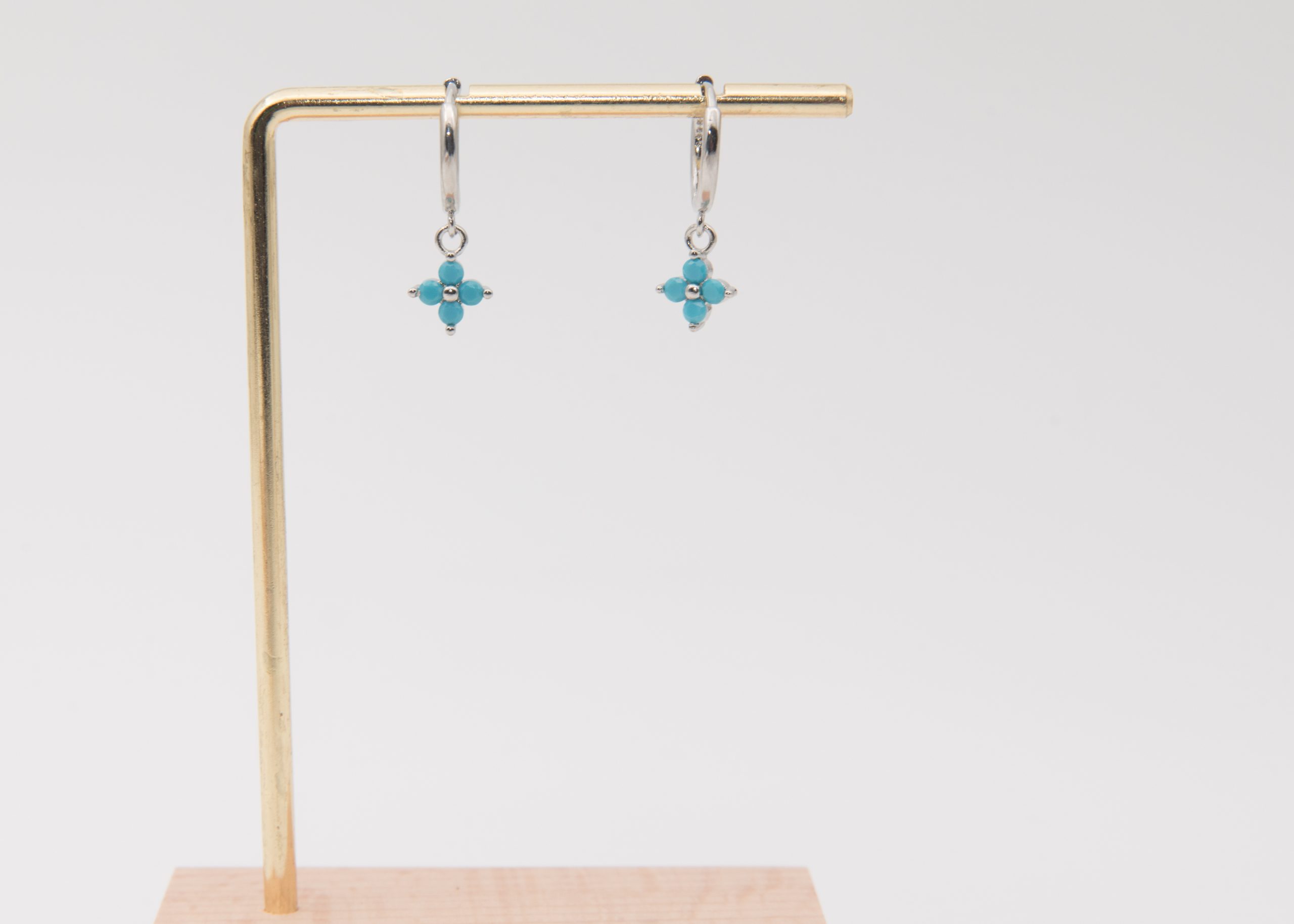 - Boucle avec un petit pendentif en pierre en forme de fleur de couleur.