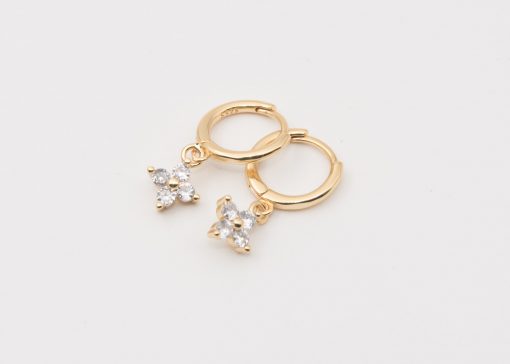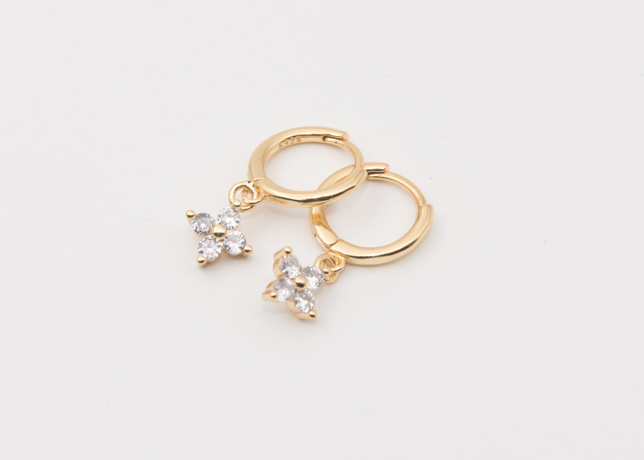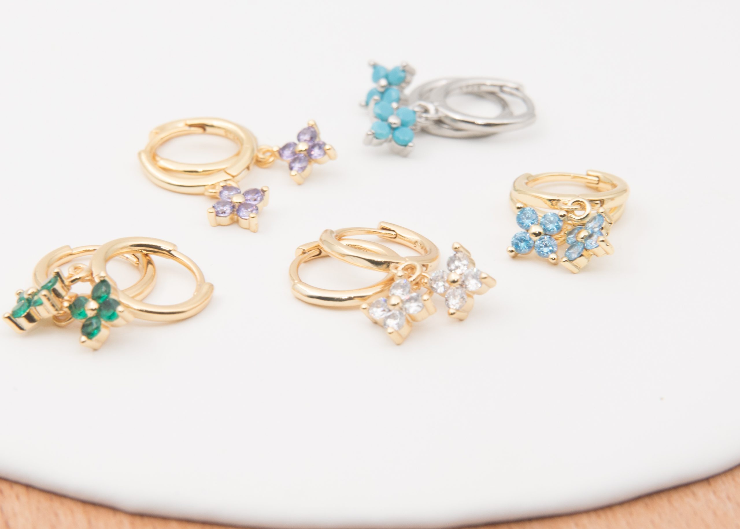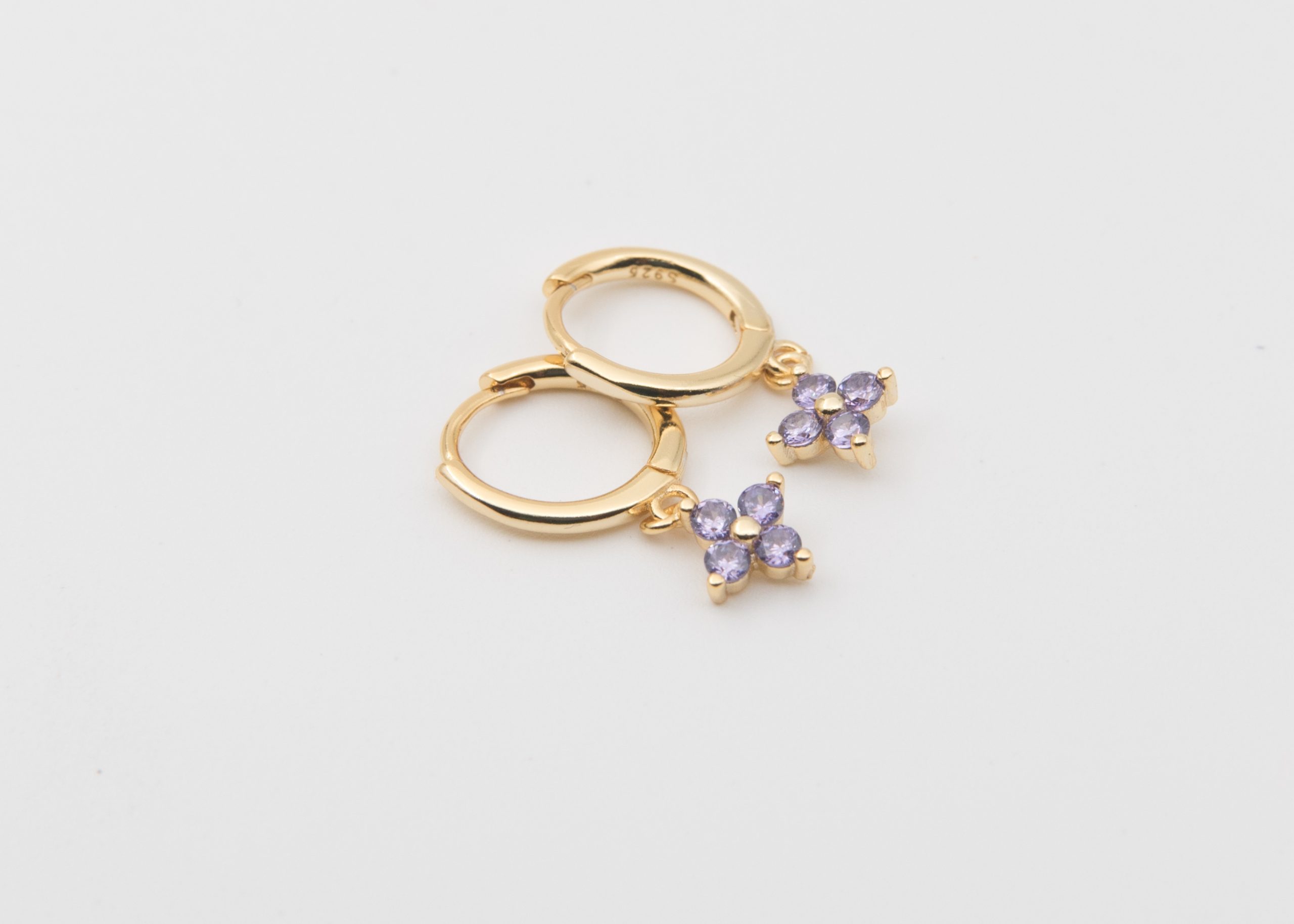 - Boucle avec un petit pendentif en pierre en forme de fleur de couleur.