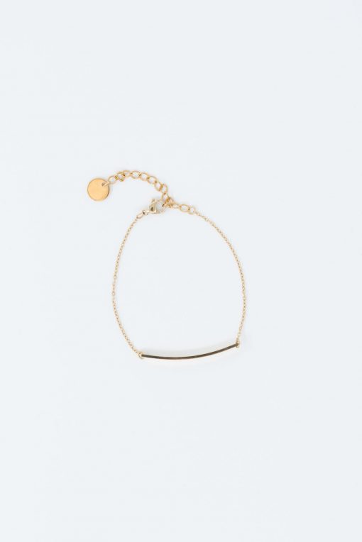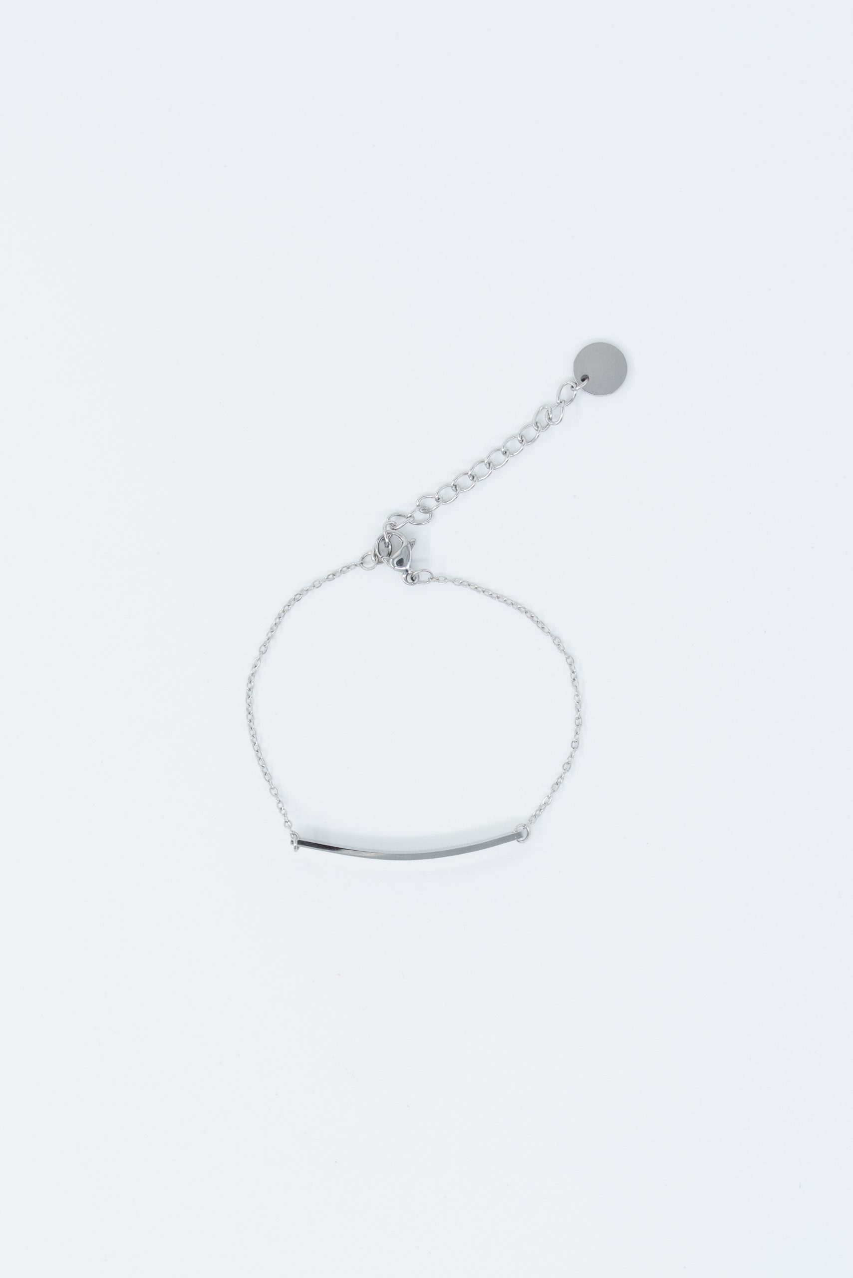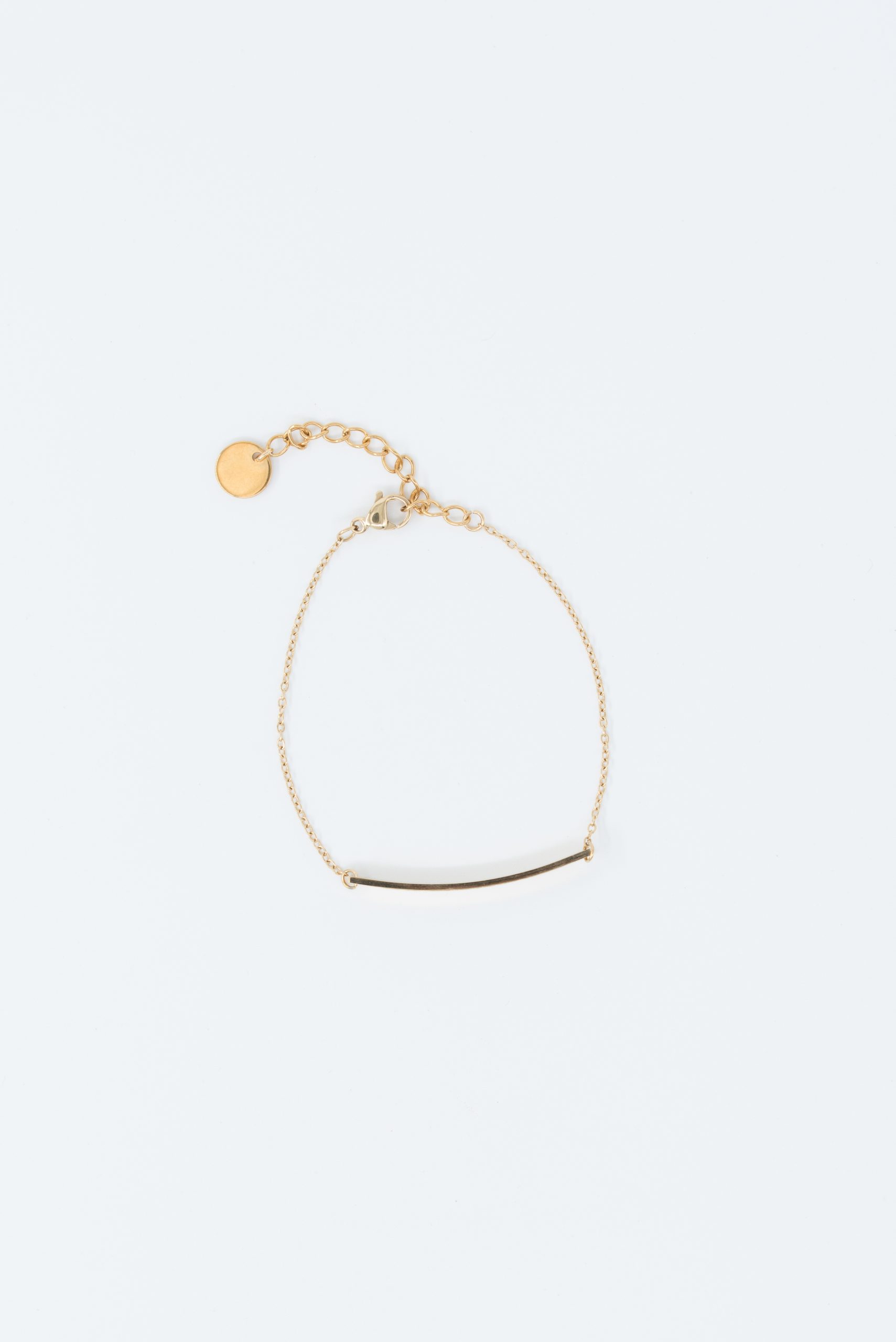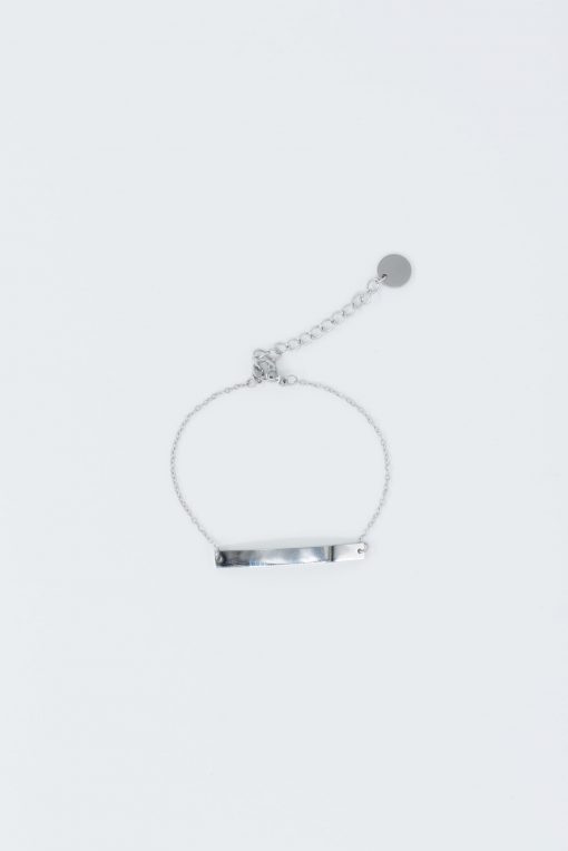 - Bracelet doré ou argenté avec une chaîne très fine encadrant une petite gourmette personnalisable.