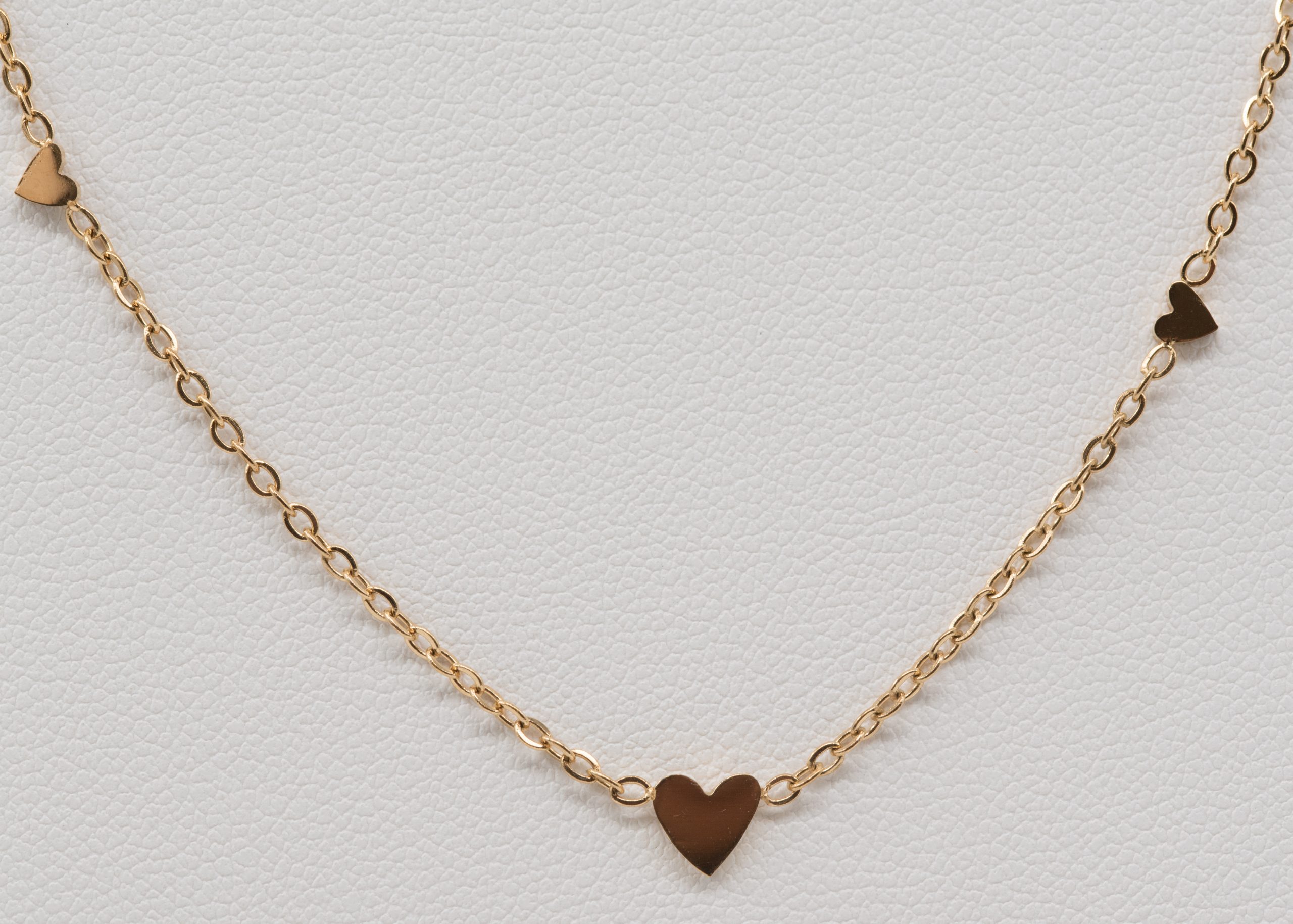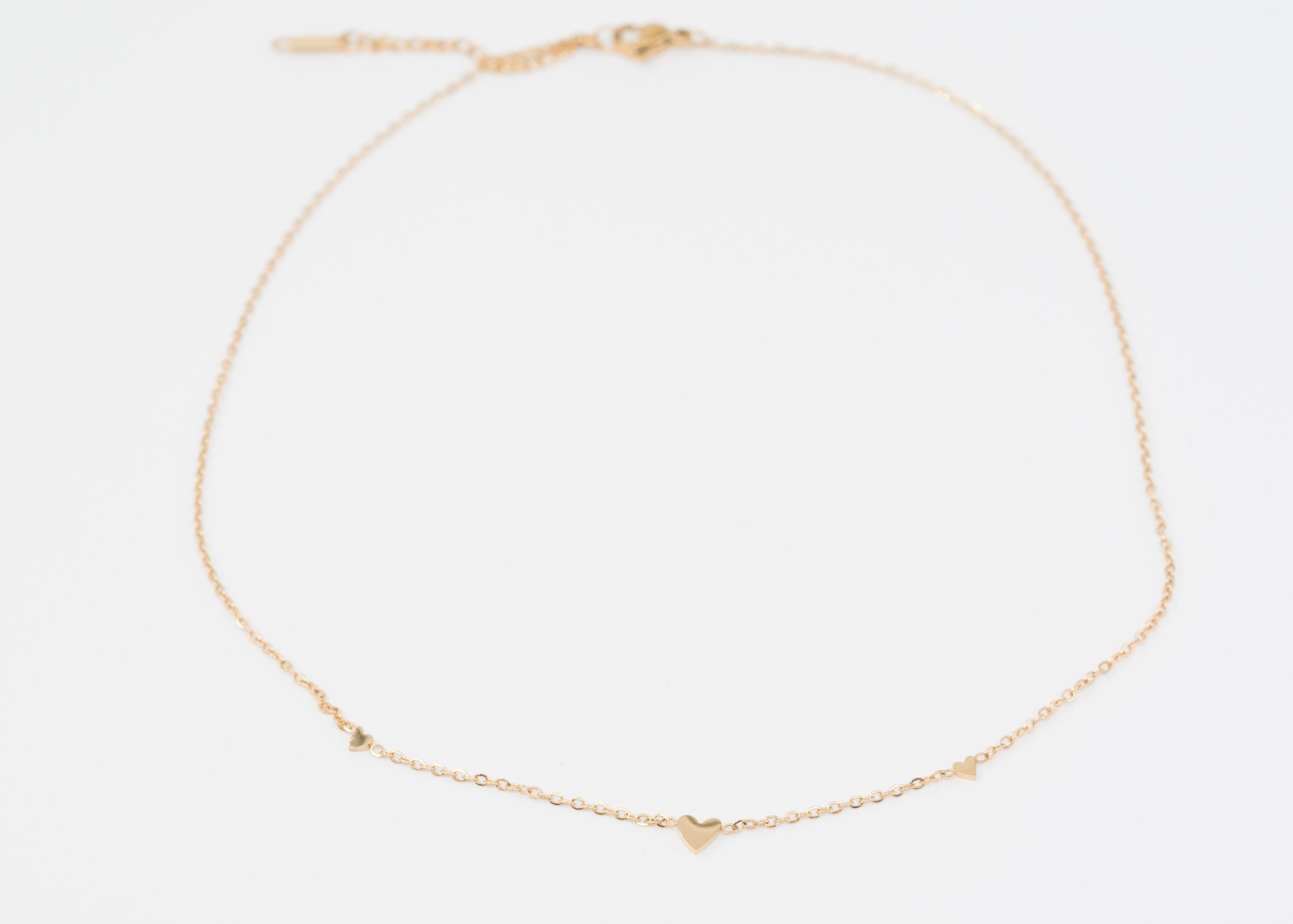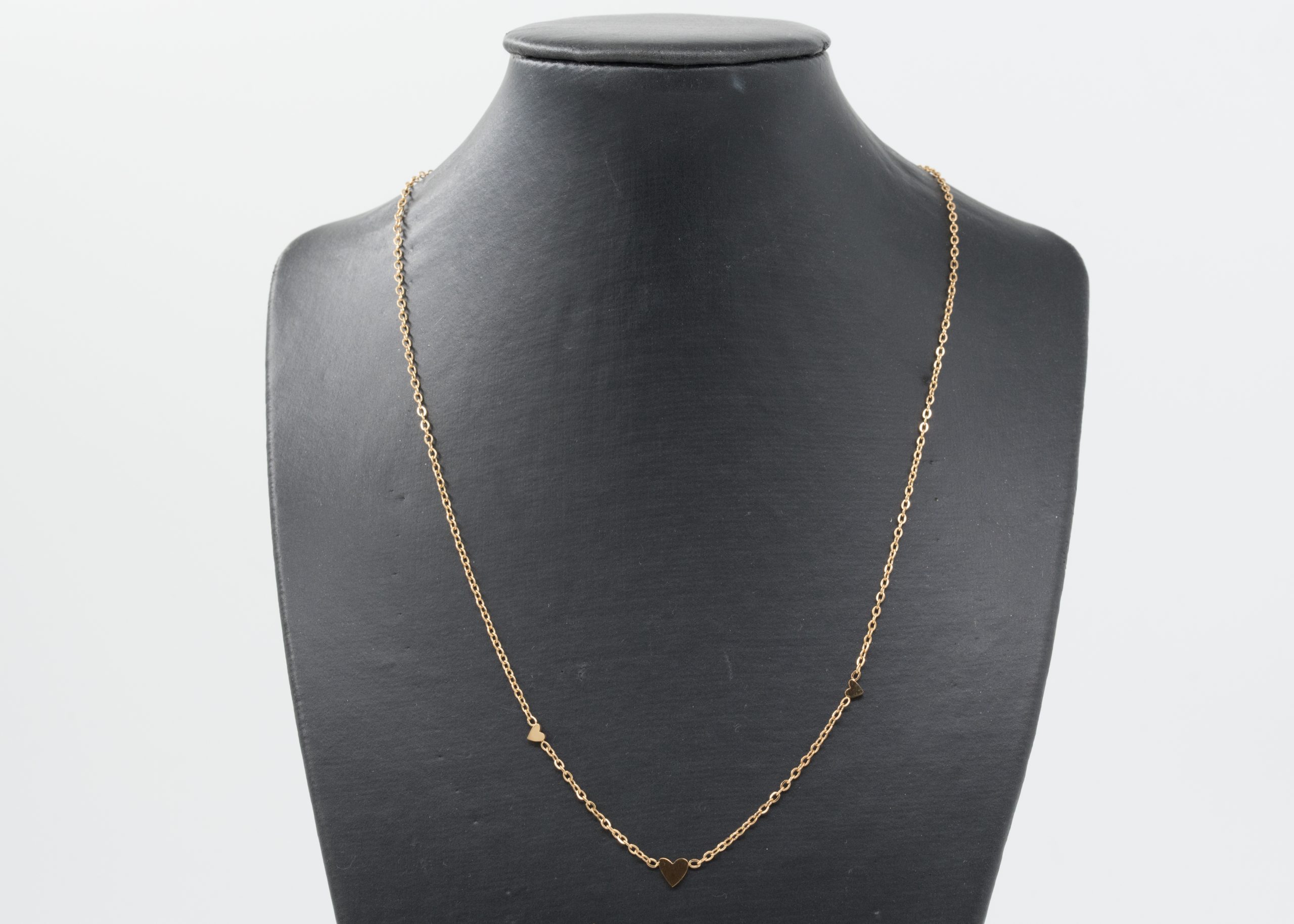 - Collier doré avec une chaîne très fine et discrète avec trois petits cœurs.